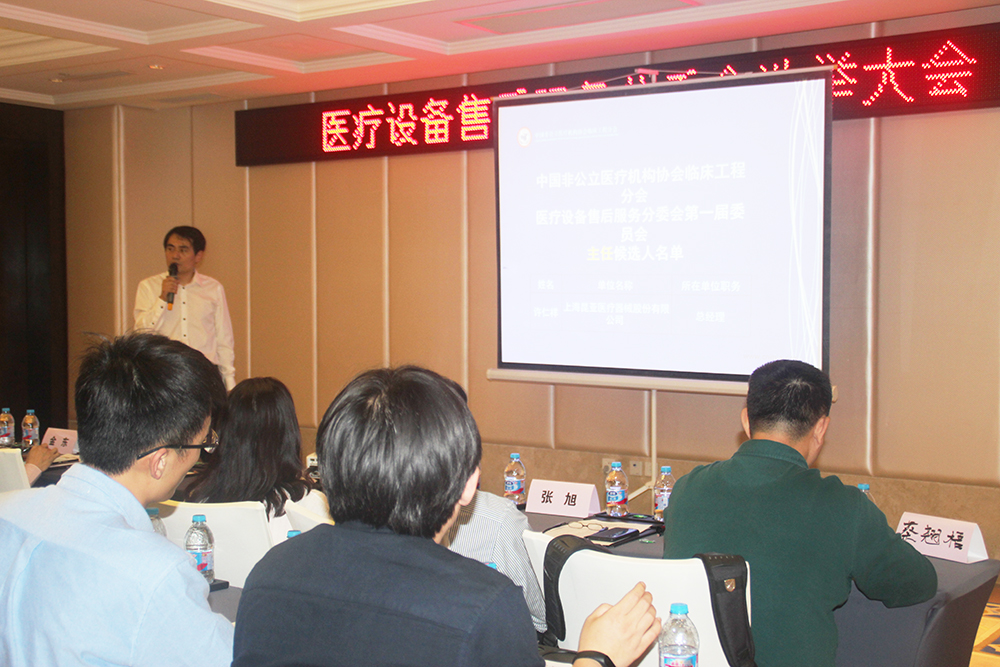 5月13日下午6点,中国中国非公立医疗机构临床工程分会医疗设备售后服务选举大会在上海中航泊悦酒店举行,中国非公立医疗机构临床工程分会会长金东、中国非公立医疗机构临床工程分会常务副会长孙贵瑞、及全体分委会候选成员参加了本次会议。首届分委会候选成员共53名,应到53名,实到53名,会议由中国非公立医疗机构临床工程分会孙贵瑞常务副会长主持。