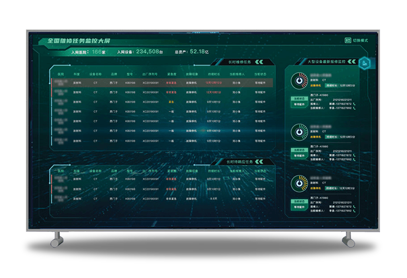 产品能帮助医院用户随时随地洞察全院设备资产数据,分角色进行各维度数据的可视化,访问入口覆盖WEB和移动端,界面上能提供一些关键数据的预警功能,比如重要设备的开机状态等。