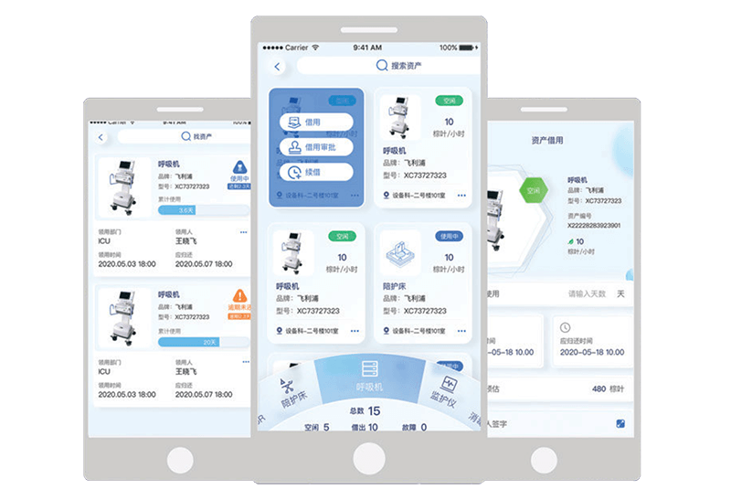 医院设备遍布在各科室,不同品类设备的借调使用时长不一,人工管理费时费力,且容易造成账目不清晰,甚至会因为设备资源分配“不均”导致各科室的服务质量下降,设备使用效率低下也会带来资源浪费。医院急需把设备使用管理进行线上化,全面替代老旧的人工管控。