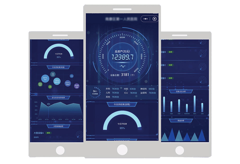 产品能帮助医院用户随时随地洞察全院设备资产数据,分角色进行各维度数据的可视化,访问入口覆盖WEB和移动端,界面上能提供一些关键数据的预警功能,比如重要设备的开机状态等。